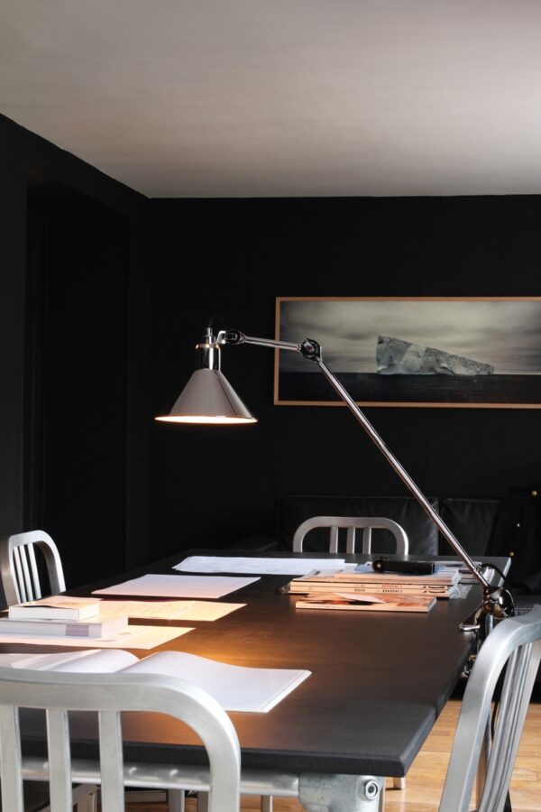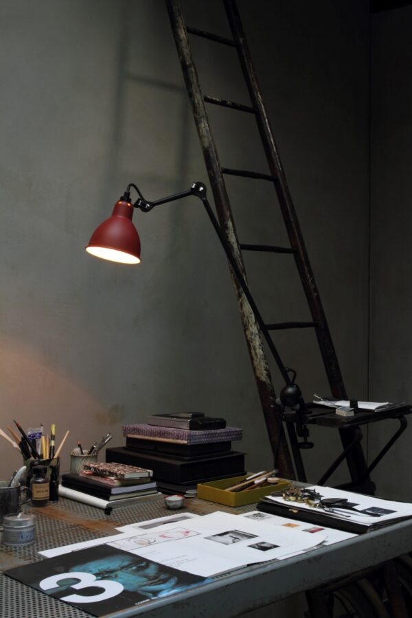1921 entwickelte Bernard-Albin Gras eine Serie von Leuchten für Industrie und Konstruktionsbüros. Die Lampe GRAS – wie sie künftig benannt wird, verblüfft durch ihre Ergonomie und einfache Mechanik : keine Schraube, keine Schweissnaht und sie überzeugt durch ihre Robustheit und Langlebigkeit. Pierre Bonnefille, ein talentierter Farbkünstler und “ Maître d’Art „, setzt charakteristisch Akzente der Lampenschirme der Lampe GRAS. Das ROUGE BOLUS, ein Rot, das dem Blattgold seinen leuchtenden Charakter gibt. RUHIGES GELB, die Farbe des Maschinenöls. TIEFES BLAU erinnert an das Kohlepapier. Schneewittchen,