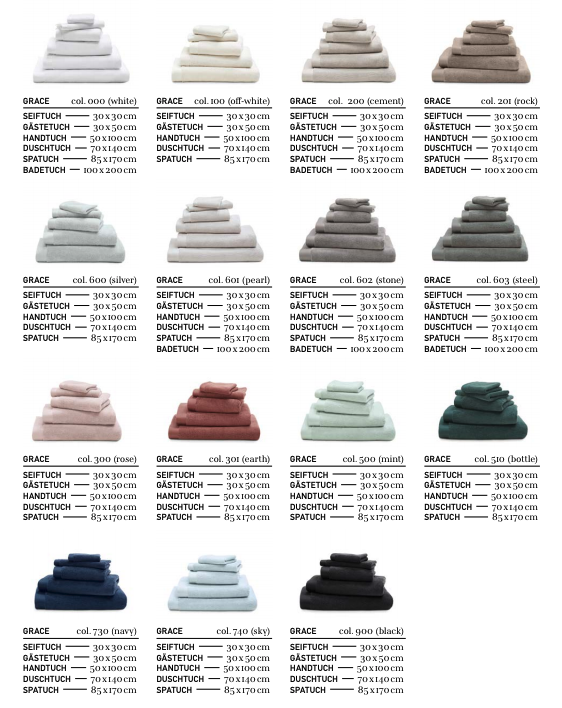 GRACE Handtuch in 7 Größen und in 15 Farben.