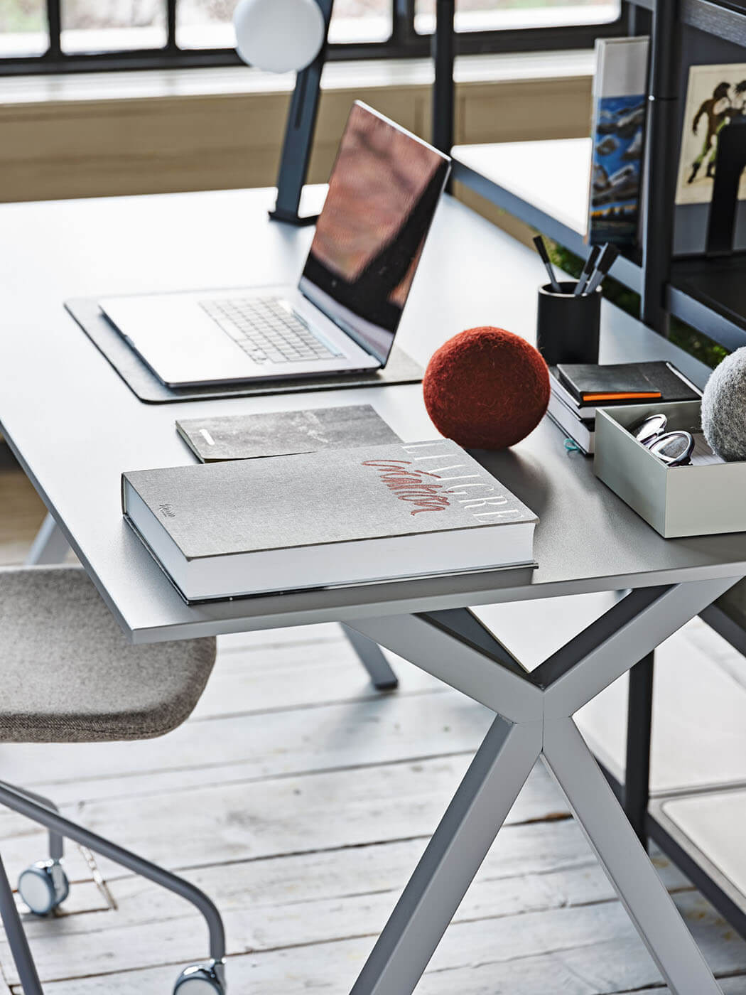 - Rechteckige Platte, konfigurierbar in Melamin, furniertem Holz, Laminat, HPL, Fenix oder Metall.