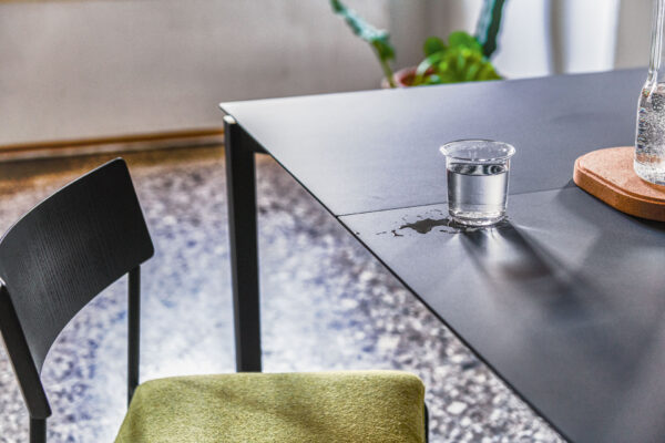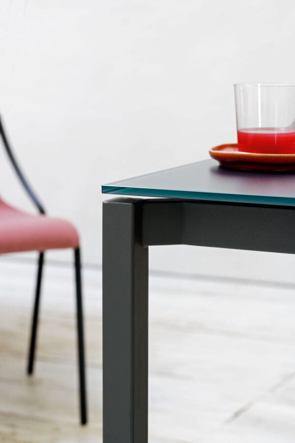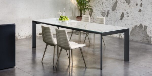 AUSFÜHRUNG Tischplatte aus Kristallkeramik vereint Eleganz und Widerstandsfähigkeit. Sie bestehen aus zwei miteinander verbundenen Platten: Die untere Schicht besteht aus gehärtetem Glas, die obere Schicht aus Keramik (Feinsteinzeug). Sobald die Platten zusammengefügt sind, entsteht eine äußerst widerstandsfähige Platte, die für die Platzierung in stark beanspruchten Umgebungen geeignet ist. Zu den Eigenschaften der Kristallkeramikplatten gehören eine hohe Wasserabweisung, Hitzebeständigkeit, Kratzfestigkeit und eine hohe Haltbarkeit.