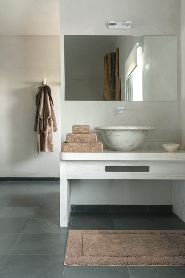 - Programm erhältlich in: Waschhandschuh, 2 Seifentücher-Größen, Handtuch, Duschtuch, Badetuch, Bademantel und passende Badematten